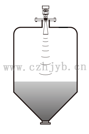 雷達物位天線發(fā)射較窄的微波脈沖,經天線向下傳輸。微波接觸到被測介質表面后被反射回來再次被天線系統(tǒng)接收,將信號傳輸給電子線路部分自動轉換成物位信號(因為微波傳播速度極快,電磁波到達目標并經反射返回接收器這一來回所用的時間幾乎是瞬間的)。
