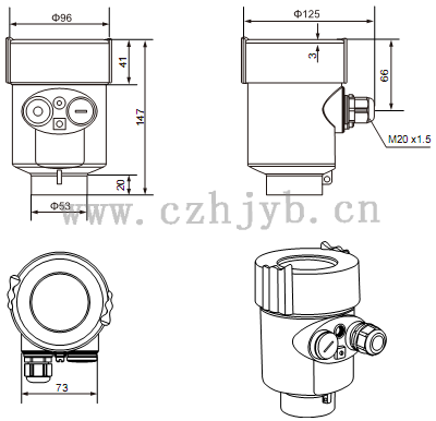 測量范圍: 液體 30米/ 固塊 20米/ 固粉 15米